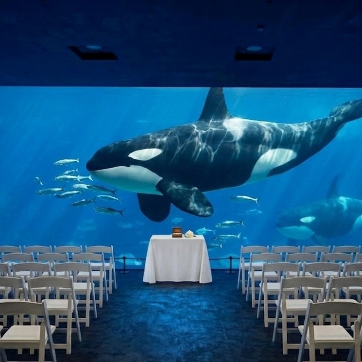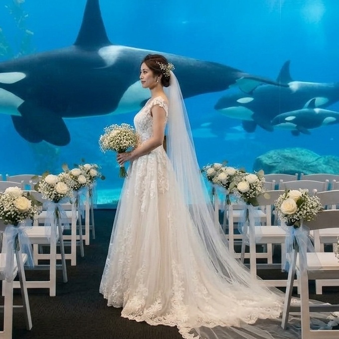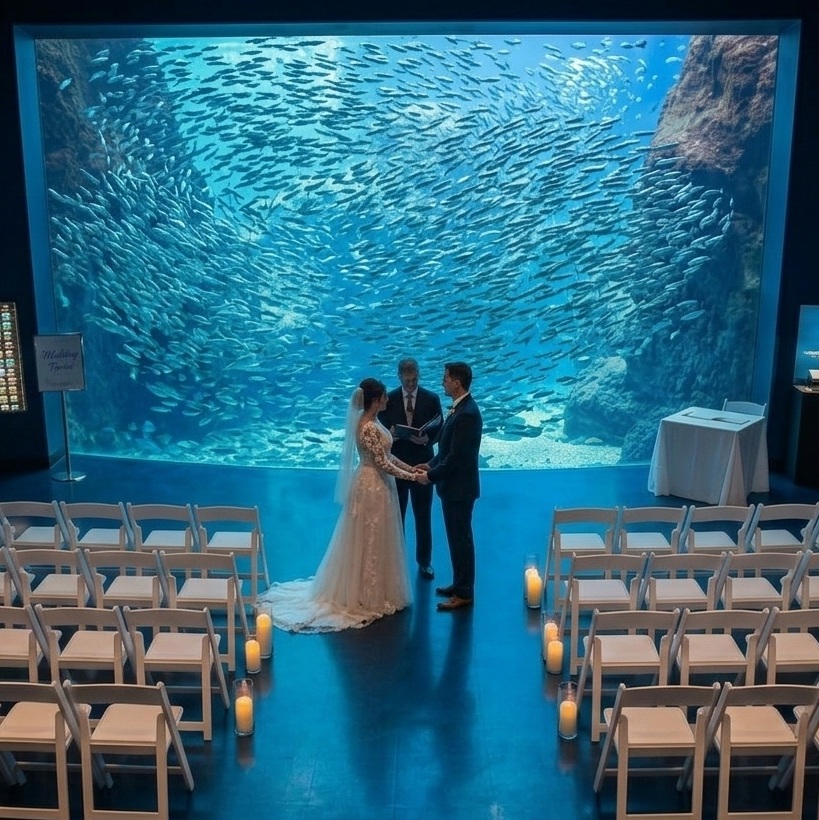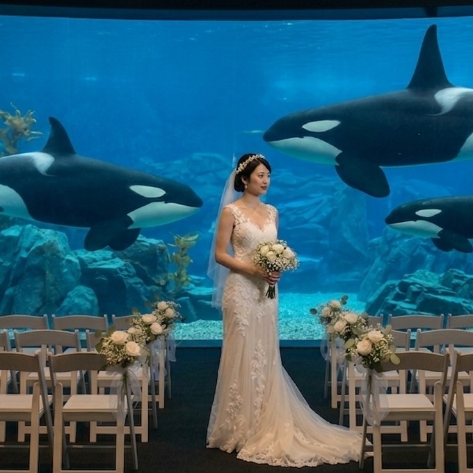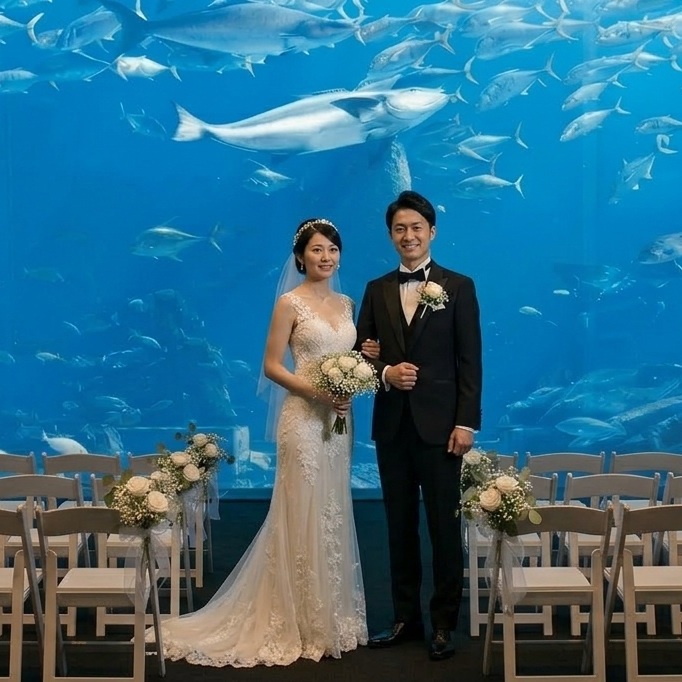 閉館後の水族館が、二人のための貸し切り結婚式場に変わります。